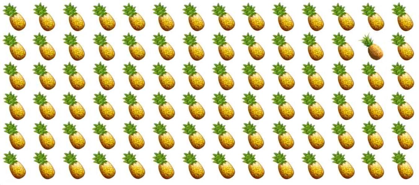 Λύστε ένα απλό, αλλά πολύ δύσκολο παζλ – θα πρέπει να βρείτε έναν ειδικό ανανά, ο οποίος είναι διαφορετικός από όλους αυτούς που βλέπετε στην εικόνα.