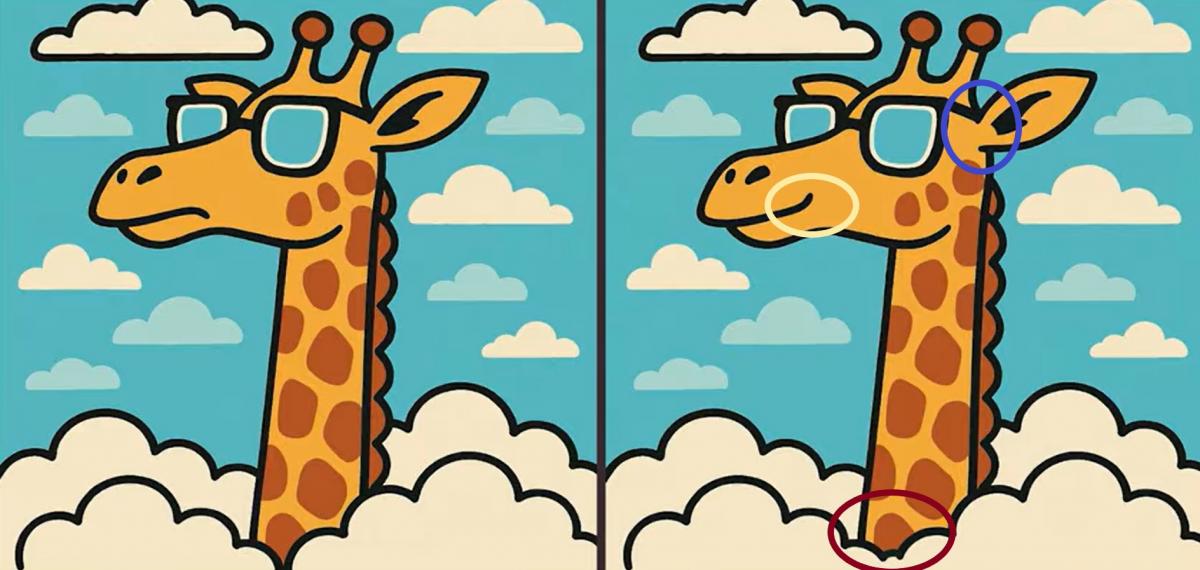 Είστε λοιπόν έτοιμοι για την επόμενη πρόκληση; Ρίξτε μια προσεκτική ματιά στις δύο εικόνες της καμηλοπάρδαλης που φοράει γυαλιά. Μπορεί να φαίνονται ίδιες με την πρώτη ματιά, αλλά υπάρχουν 3 μικρές διαφορές. Πιστεύετε ότι μπορείτε να τις βρείτε όλες σε 23 δευτερόλεπτα; Δοκιμάστε το και δοκιμάστε την οπτική σας οξύτητα!